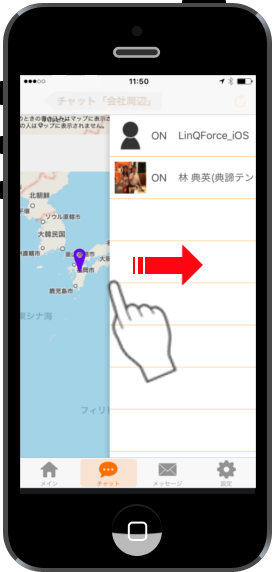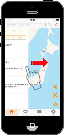 A list screen shows by stealing a flick from the screen left end for right sides like a left figure on the main screen.