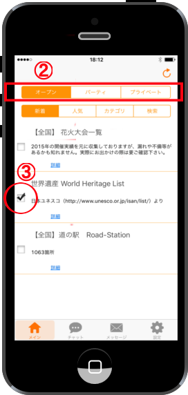 In this case, select the [Open Map] and the ③ "World Heritage list" checkbox.